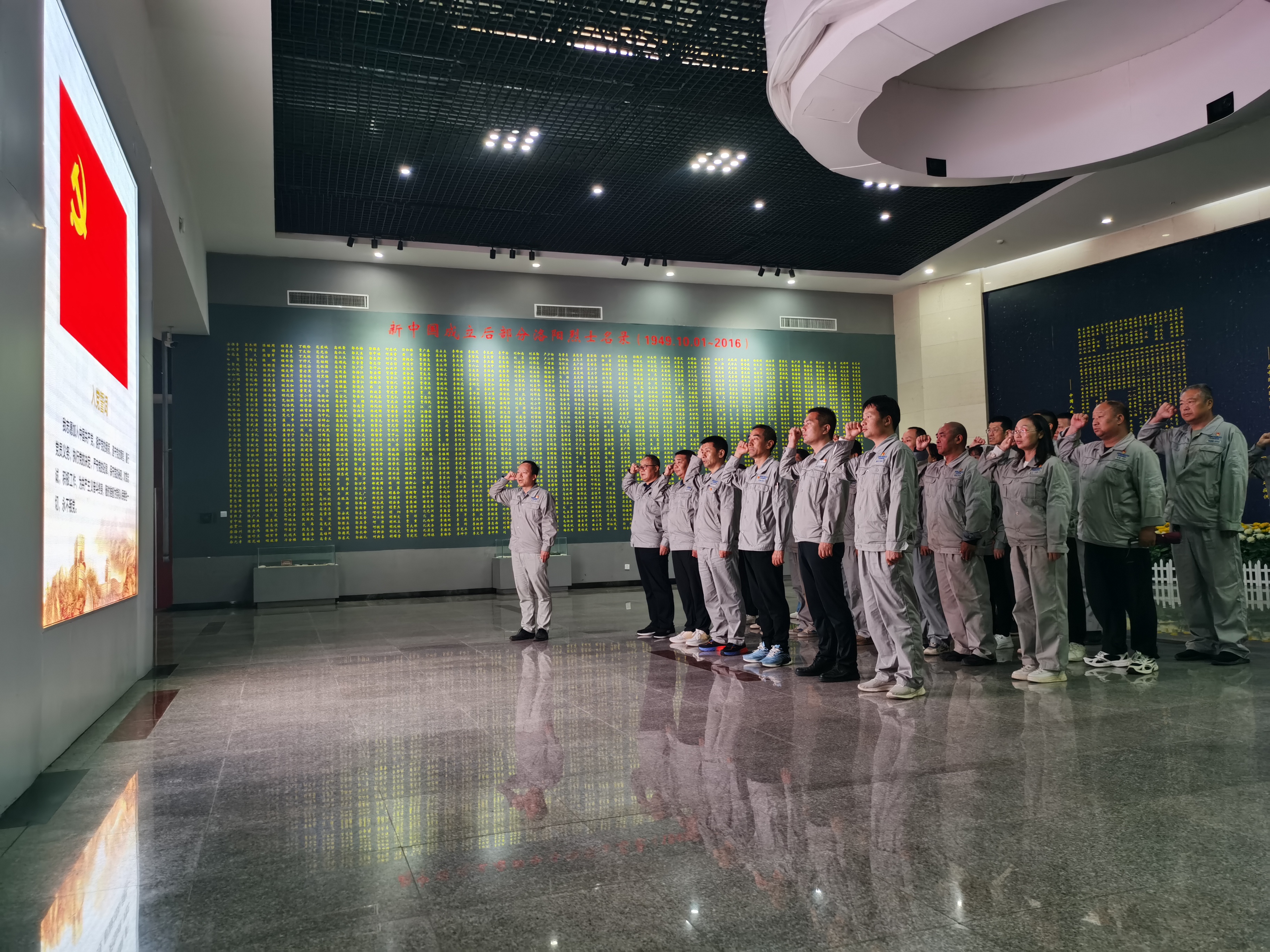 在革命烈士紀念碑前,大家全體肅立、向革命烈士敬獻花籃;為民族獨立、人民解放和國家富強、人民幸福而英勇犧牲的烈士默哀3分鐘;順時針圍繞一周瞻仰紀念碑;祭掃烈士墓。懷著滿滿的崇敬之情,黨員們進入洛陽革命烈士事跡陳列館,追尋革命先輩的奮斗足跡,感悟先輩的革命精神,緬懷革命先驅的豐功偉績。對在戰(zhàn)爭中不畏強敵、堅韌不拔、百折不撓的革命先輩致以緬懷,也對“解放洛陽”這一幅戰(zhàn)火紛飛但依舊勇往直前的壯麗畫卷有了深刻的認識。在鮮紅的黨旗面前,黨員們舉起右拳,莊嚴肅立,重溫入黨誓詞,誓詞響徹余音繞梁。