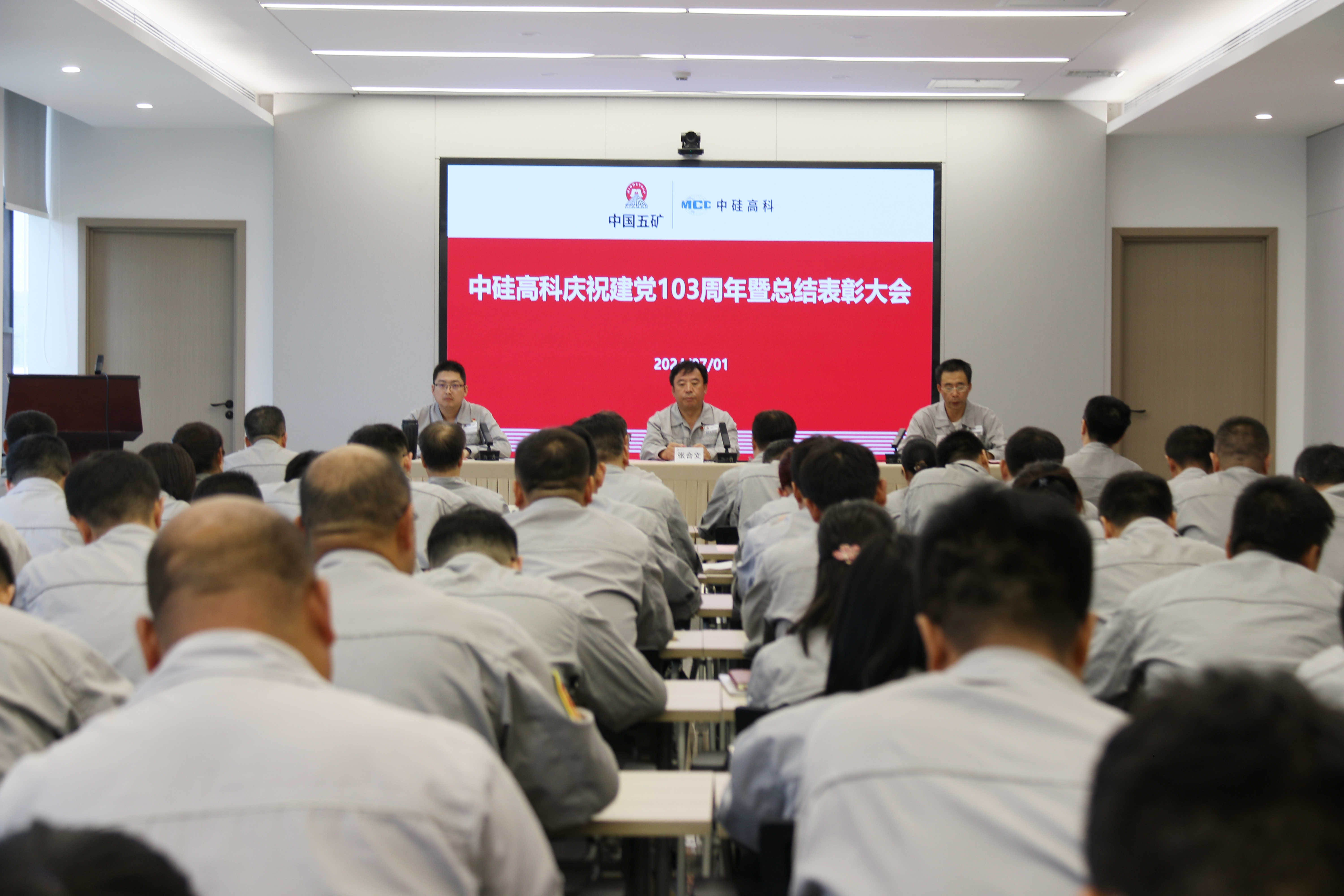 7月1日,中硅高科召開慶祝建黨103周年暨總結(jié)表彰大會。中國恩菲副總經(jīng)理、中硅高科董事長張合文出席會議并講話。公司黨委書記侯曉東作黨委工作總結(jié)報告,副董事長、總經(jīng)理、黨委副書記萬燁主持會議并作生產(chǎn)經(jīng)營工作報告。